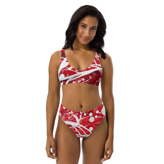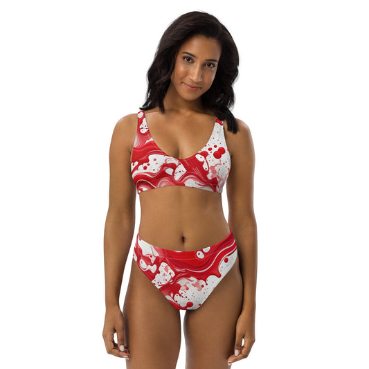Red and White Splash Art 2PC Swimsuit