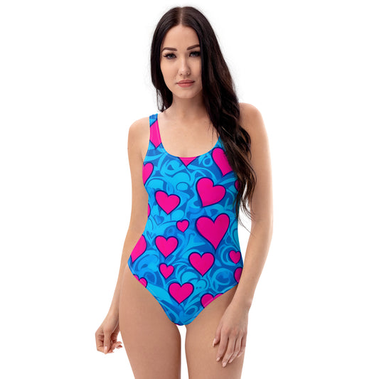 Cute Blue Hearts on Pink 1PC Swimsuit