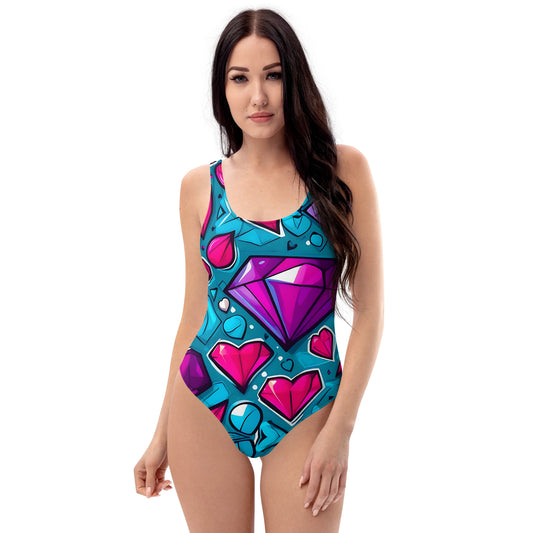 Elevate your beachwear with our Hearts and Diamonds One-piece Swimsuit collection. Each suit exudes elegance and glamour, adorned with exquisite details that make you stand out on the beach or by the pool. Embrace sophistication and radiate confidence with Paradise Rebel