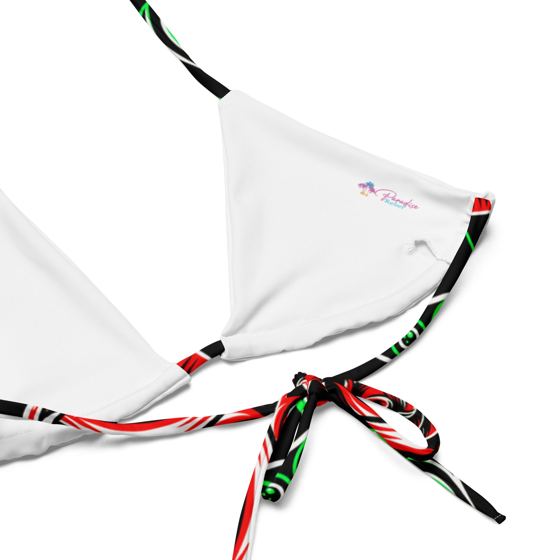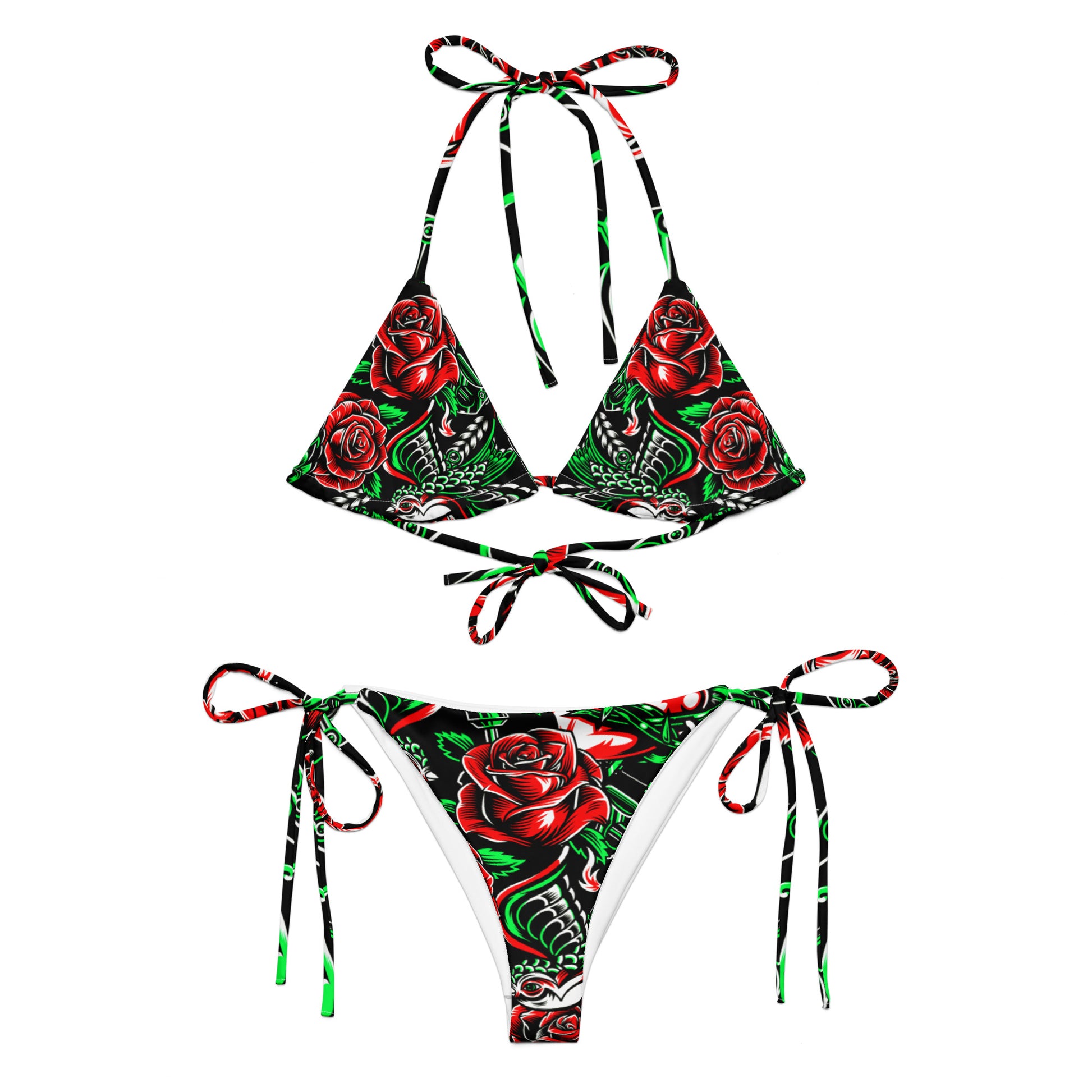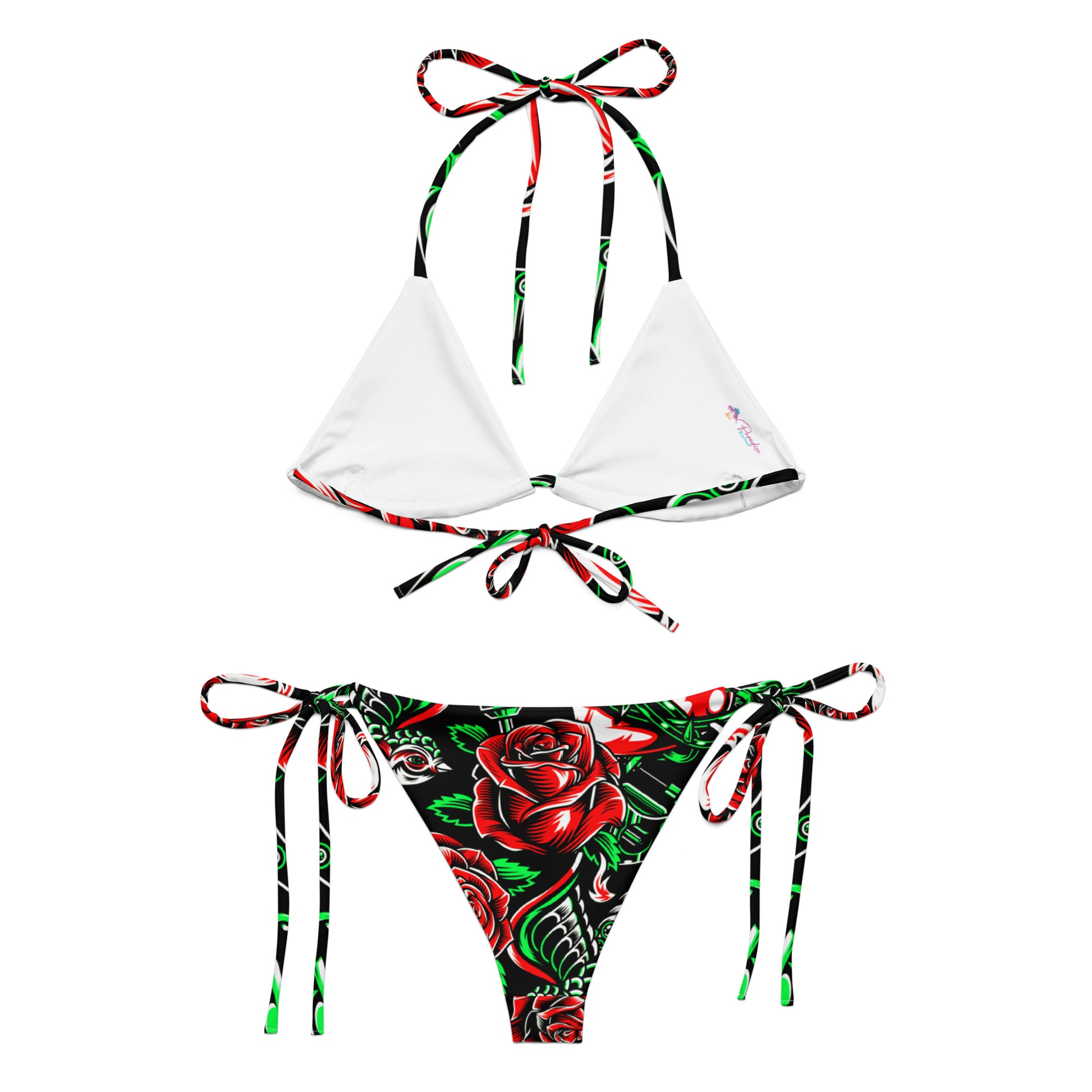• To make your All-Over Print Recycled String Bikini last longer, thoroughly rinse it off after each use and get rid of any chlorine/salt residue.